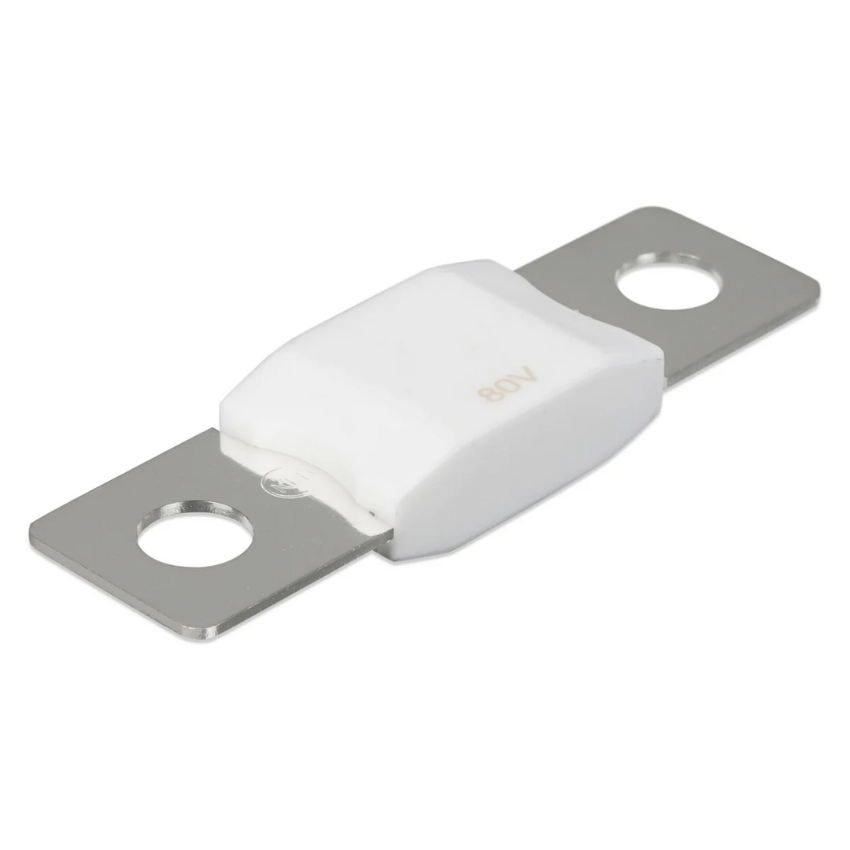 Victron Energy MEGA-fuses are designed to protect circuits with high amperage. These fuses offer overcurrent protection, a visual indicator for blown fuses, low resistance, and high current capacity. Use the 80V model for 12V, 24V, and 48V systems. Below is a complete list of all available MEGA fuses.
